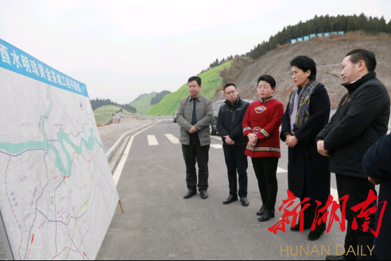 新湖南客户端1月28日讯(保靖融媒记者 刘番)1月26日,湘西土家族苗族自治州委副书记、州长陈华,到保靖县调研文旅茶重点项目建设、安全生产工作。她指出,要牢固树立和践行绿水青山就是金山银山的理念,站在人与自然和谐共生的高度谋划城市发展,展现酉水明珠靓丽风貌,打造生态宜居的“幸福家园”。