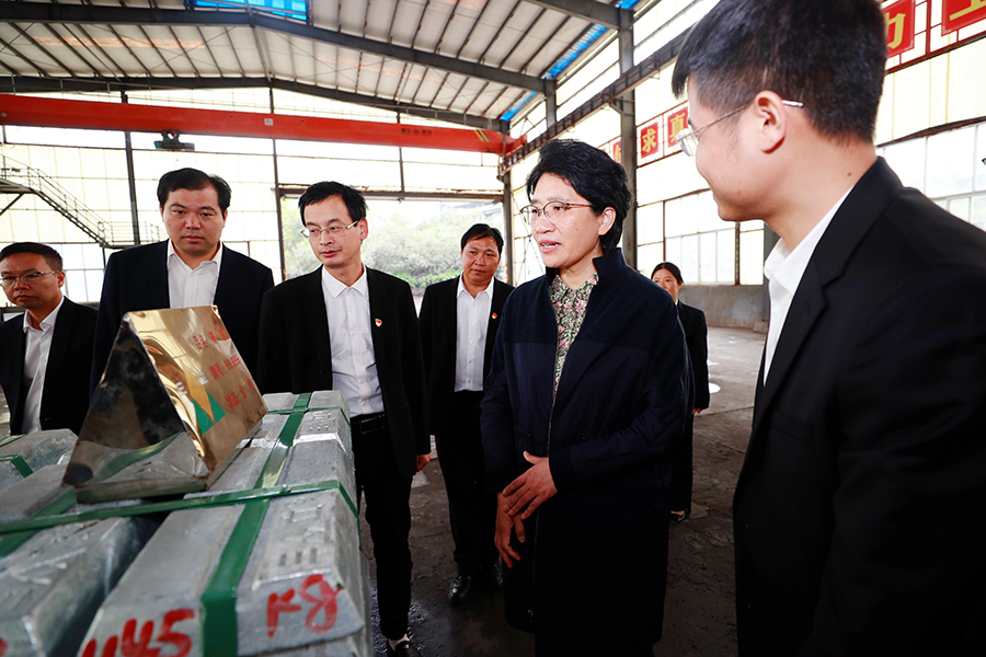 4月12日,湘西土家族苗族自治州委副书记、州长陈华到花垣县调研绿色矿业及新材料产业链建设情况,督导“锰三角”污染整治和安全生产工作。她强调,要科学开展矿产资源开发利用,坚持科技创新驱动,抓好矿业转型升级,推动绿色矿业及新材料产业链持续健康发展。