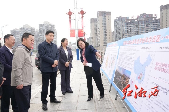 在湘鄂情大桥,刘涛详细了解武陵山龙山来凤经济协作示范区规划、发展情况。团结报全媒体记者刘炜 摄