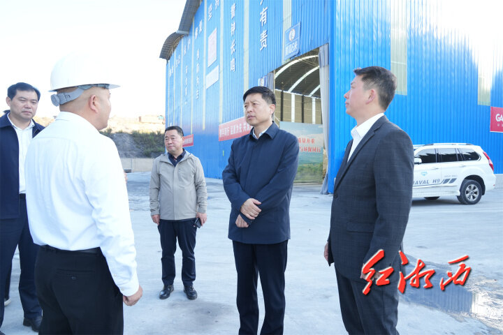 刘涛深入东方矿业公司电解车间、产品库,详细了解企业生产经营、清洁化生产工艺升级改造等情况,叮嘱企业负责人在抢占行业技术制高点的同时,要守住环保底线、安全底线。在兆科动力新能源有限公司,刘涛参观了生产车间及产品展厅,了解公司的生产规模、销售渠道,勉励企业提高行业标准,加快做大做强,形成规模优势。来到白岩湾尾矿库,刘涛仔细了解库区日常监测、隐患排查等情况,要求时刻绷紧安全生产这根弦,特别要严格防范汛期风险隐患。在振兴渣库渗滤液污水处理厂,刘涛仔细询问污水处理工艺和流程,了解相关数据,要求企业加强监测,定期检测,确保各项指标全部达标。刘涛还来到华垣环能科技有限公司、新万润环保新材料有限公司,了解企业铅锌渣综合利用和锰渣利用项目建设情况,希望企业树牢绿色发展理念,做好中长期发展规划,大力研发适应市场需求的铅锌渣、锰渣无害化资源化利用技术,生产出广泛应用于各行业领域的新材料、新产品,提高市场竞争力。