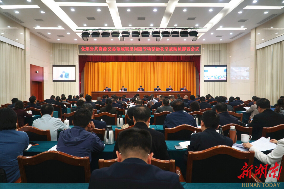 11月6日,湘西土家族苗族自治州公共资源交易领域突出问题专项整治攻坚战动员部署会在吉首召开。州委书记刘涛主持会议并讲话,强调要深入学习贯彻党的二十届三中全会及习近平总书记关于党风廉政建设和反腐败斗争的重要论述精神,把思想和行动统一到党中央决策部署和省委、省政府工作要求上来,认真落实全省专项整治攻坚战动员部署会要求,突出问题导向、勇于攻坚克难,坚定坚决打好打赢这场攻坚战,打造优质高效、规范公平、阳光透明的交易环境,护航全州高质量发展。
