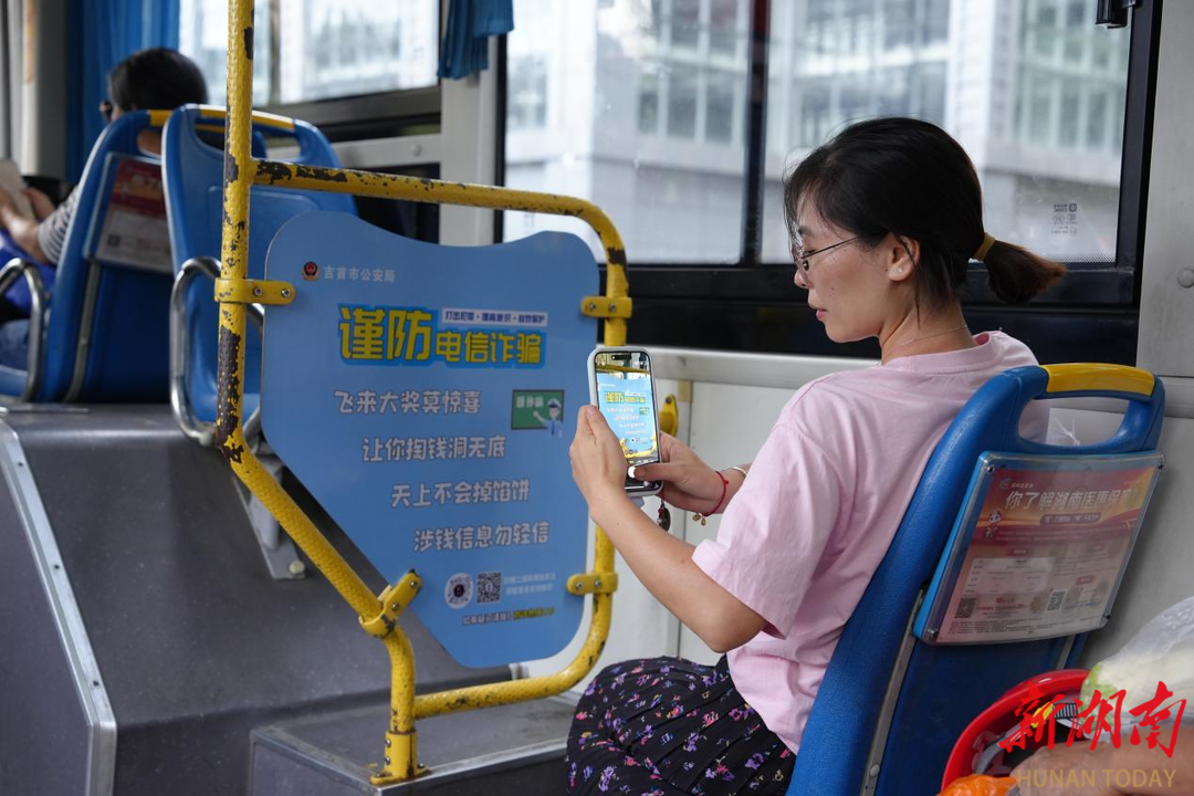 吉首反诈公交车上市民拍照打卡学习反诈知识(图片作者:田梅)