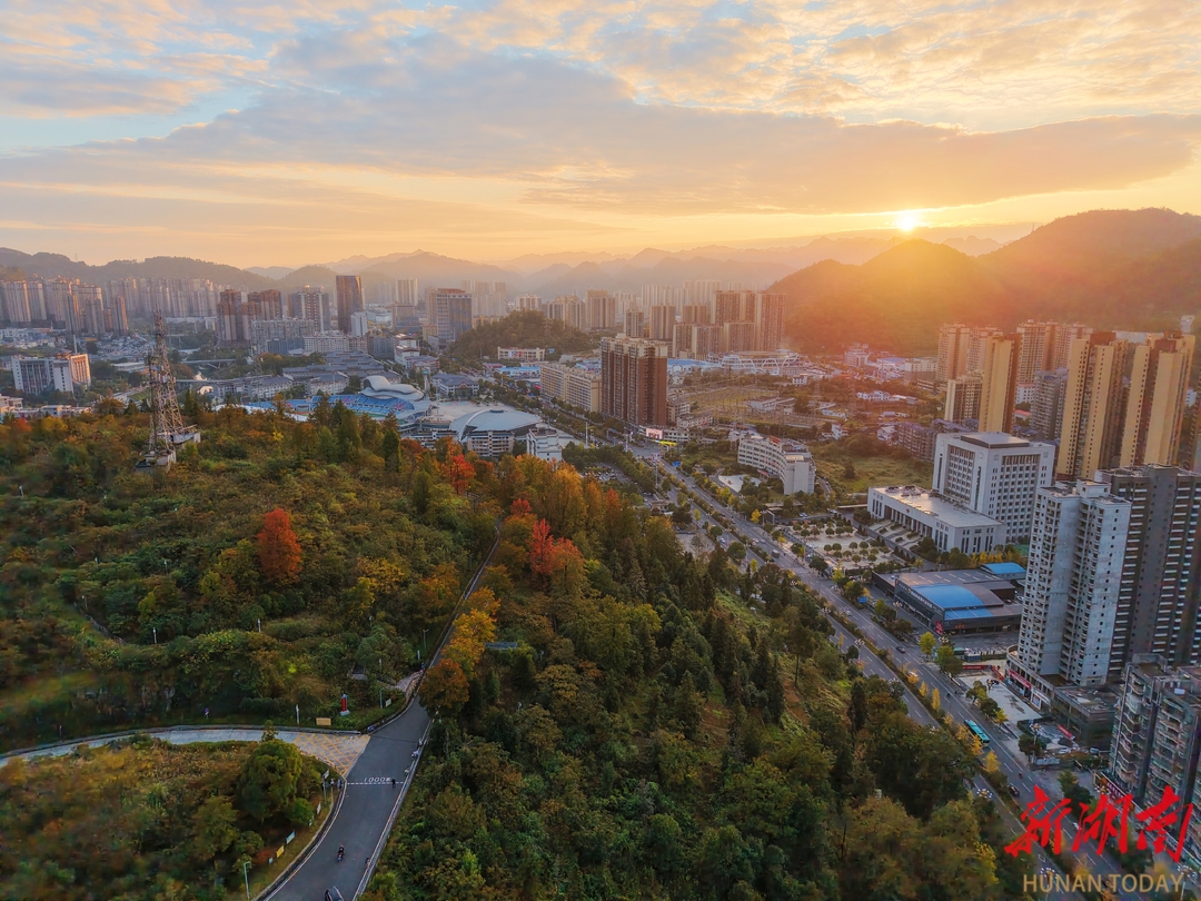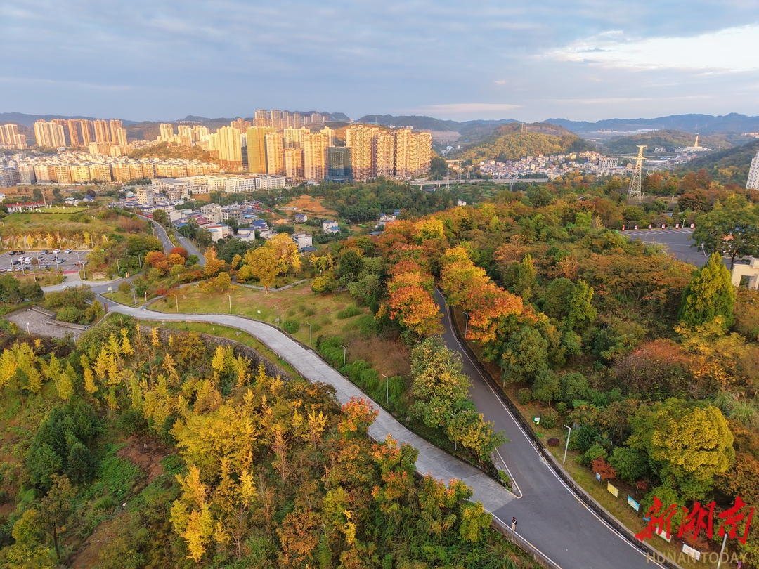 11月4日的湘西土家族苗族自治州吉首市,秋阳已酿得足够醇厚,将大坡气象科普公园晕染成一幅流动的油彩画。