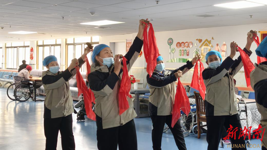 近日,笔者走进刚荣获全国“敬老文明号”的湘西土家族苗族自治州吉首市中心敬老院,护理员正挥舞着手中自制的红绸道具,伴随着《九月九的酒》的节奏,为老人们表演自编自导的舞蹈,一曲舞毕,老人们纷纷鼓掌,嘴角含笑。