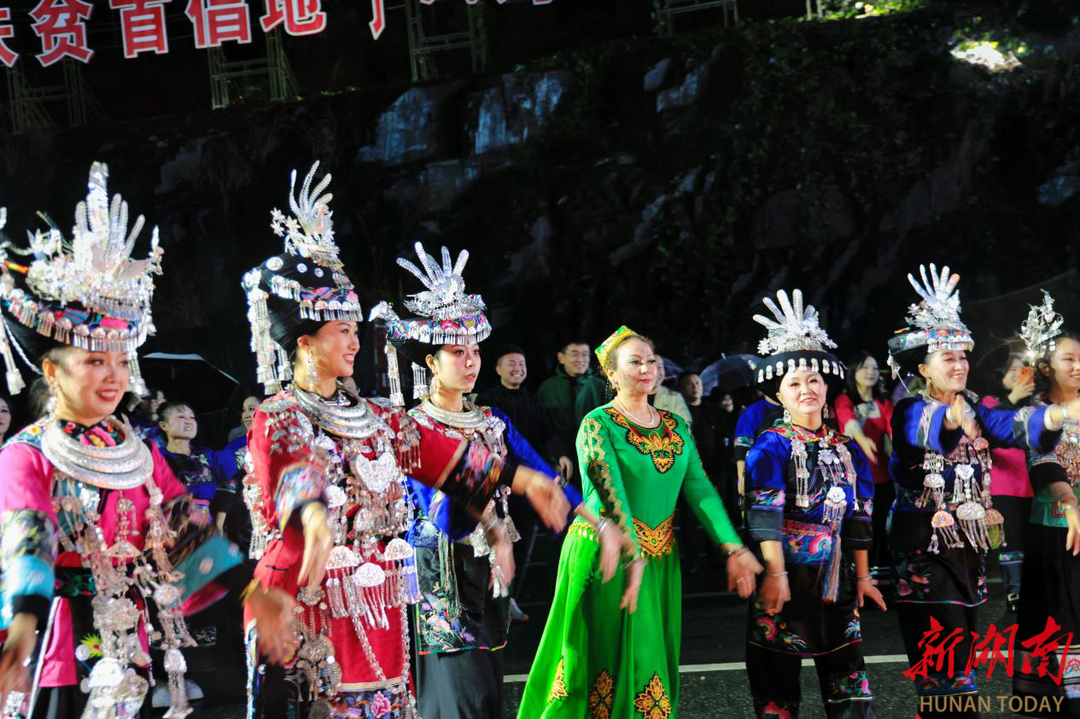 新湖南客户端11月5日讯(通讯员 肖引霞 覃文湘 张庆港 邓雨露)团结之歌响彻苗乡,篝火燃情共舞团圆。11月3日晚,湘西土家族苗族自治州花垣县双龙镇十八洞村灯火璀璨,人声鼎沸,欢声如潮。铸牢中华民族共同体意识·湘西长行·十八洞民族吉客群众大舞台在这里盛大启幕,各族儿女齐聚一堂,以歌会友、以舞传情,共同绘就一幅“中华民族一家亲,同心共筑中国梦”的动人画卷。