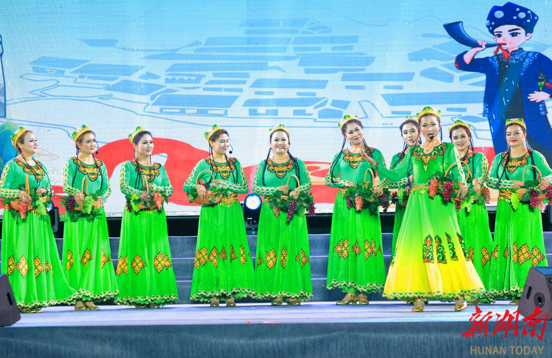 苗乡丰收的喜悦余韵未散,来自远方的“亲戚”便踏歌而至。新疆吐鲁番新城西门村和喀什疏附县阿亚格曼干村的朋友们,带来了极具西域风情的歌舞《新城西门村的欢乐》与《新疆民歌串烧》,欢快的艾德莱斯绸裙摆旋转如花,热情奔放的舞步感染着每一位观众。