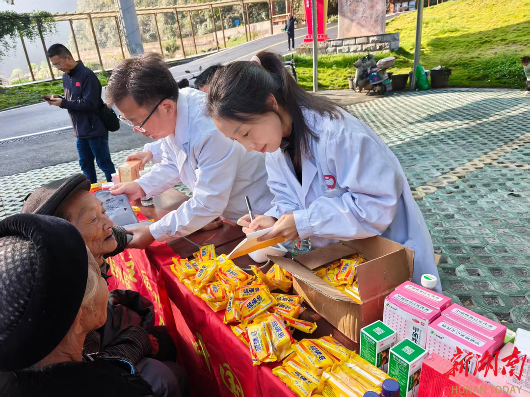 义诊区内,民盟吉首基层委员会与爱尔眼科医院的医护人员耐心为村民测量血压、检查视力,发放常用药品,普及健康知识。“在家门口就能享受专业的医疗服务,真是暖到心里!”不少老人感慨道。