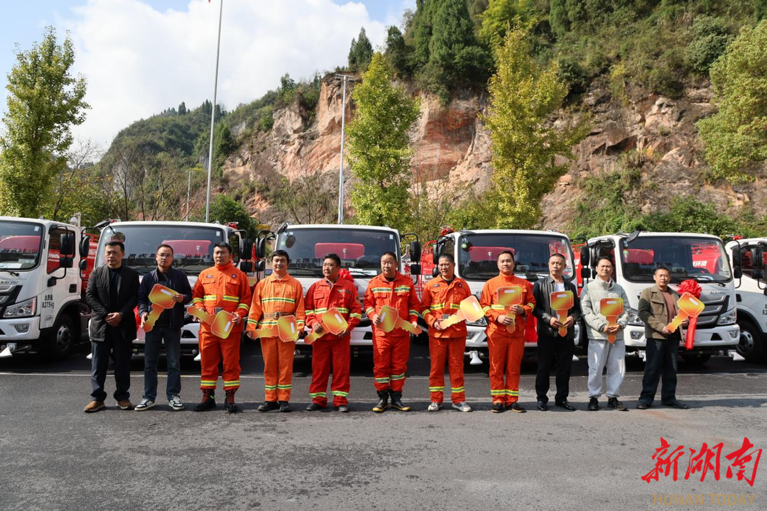 新湖南客户端11月6日讯(通讯员 李彭安娜)11月4日,湘西土家族苗族自治州保靖县消防救援大队院内12台崭新的森林防灭火专用车辆擦拭一新、整齐列队,红色车身搭配醒目的警示标识,尽显“硬核”气场。随着12个乡镇代表依次接过车辆钥匙,这场充满仪式感的发放仪式也正式拉开了该县“119”消防宣传月的火热序幕。