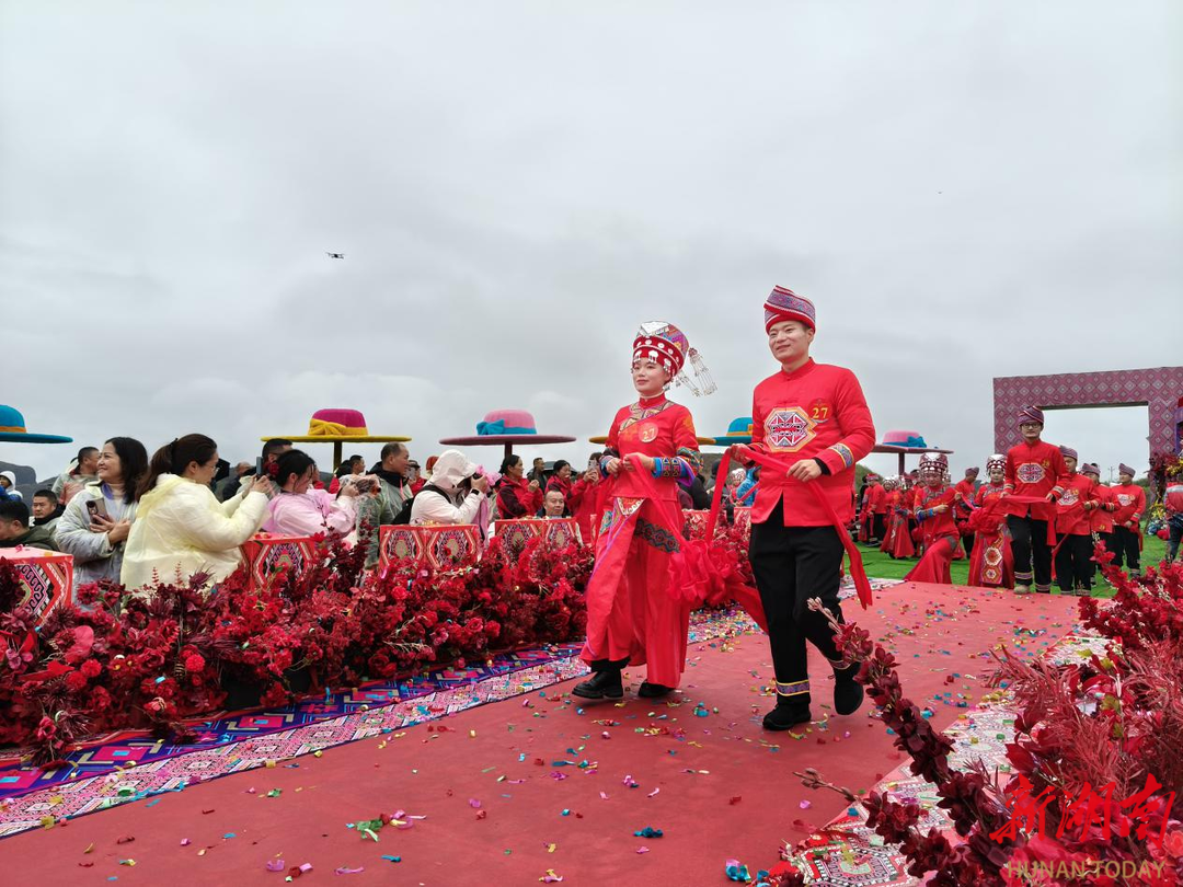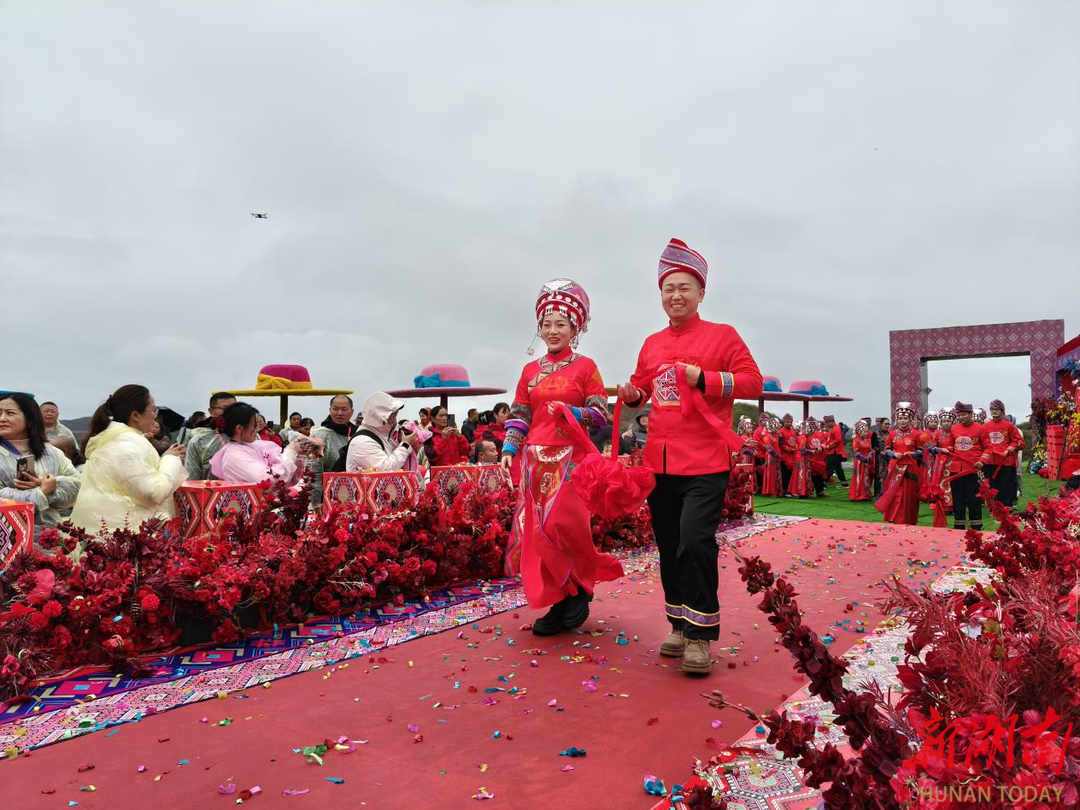 湖南日报·新湖南客户端11月8日讯(全媒体记者 杨元崇 郭朵朵 通讯员 莫代银)云海翻涌,见证永恒。11月8日,在第四届湘西土家族苗族自治州旅游发展大会举办期间,龙山县八面山旅游度假区成功举办“1314·云顶永约”集体婚礼。100名新人在海拔1314米的观景台上,以云海为盟、青山为证,共同许下相伴一生的誓言,为八面山打造“忠贞爱情圣地”文旅IP增添浓墨重彩的一笔。