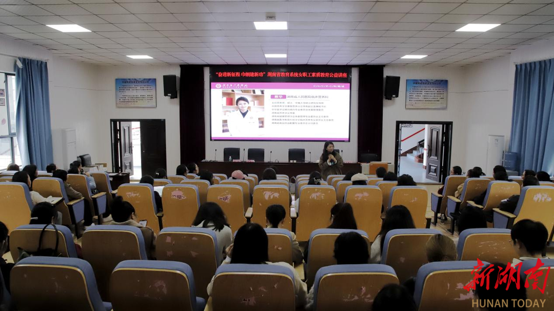新湖南客户端11月9日讯(通讯员 周文雅 吴姣)11月7日下午,湖南省教育系统女职工素质教育公益讲座,在吉首大学思政园举行。湖南省人民医院临床营养科主任营养师、中南大学硕士研究生导师蔡华主讲,吉首大学校工会女工委主任周琴主持,吉首校区各分工会百余名女教职工代表参会。