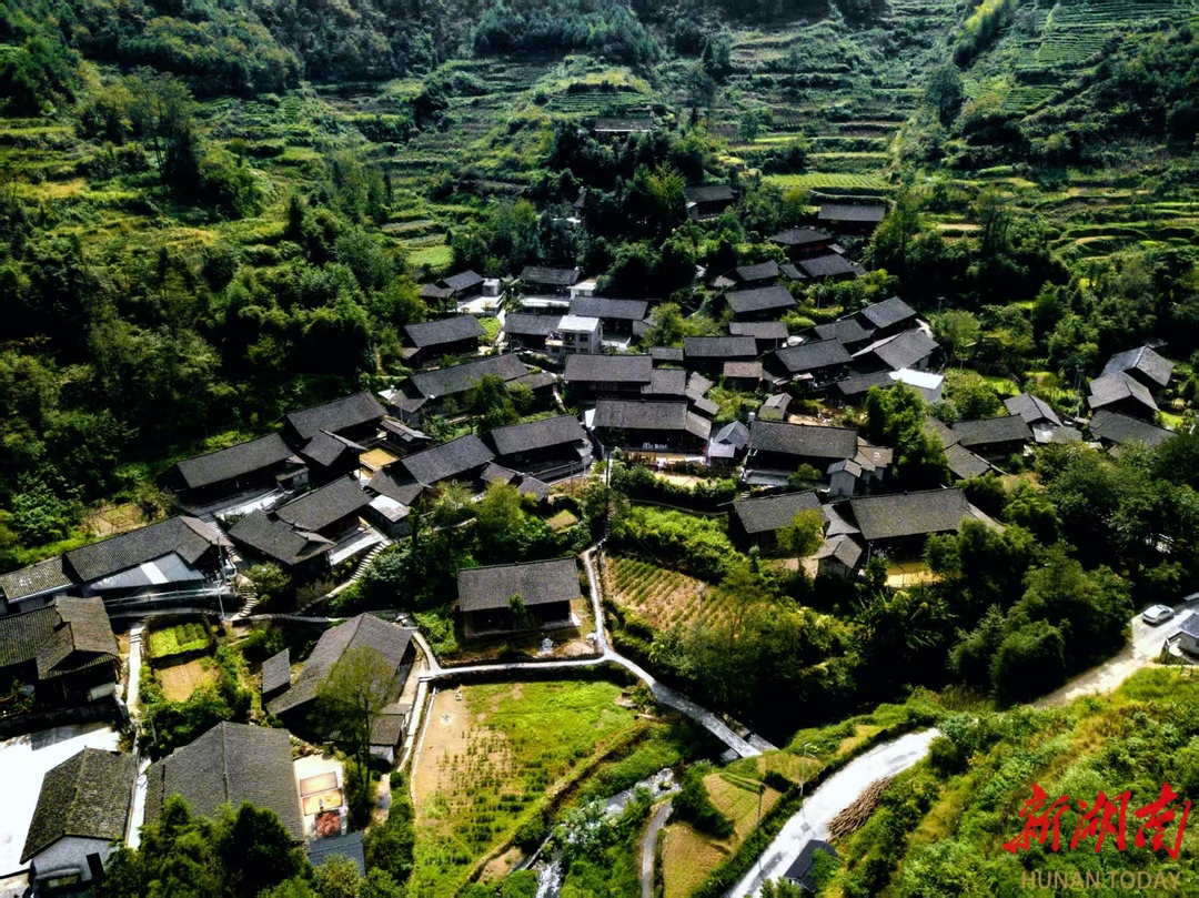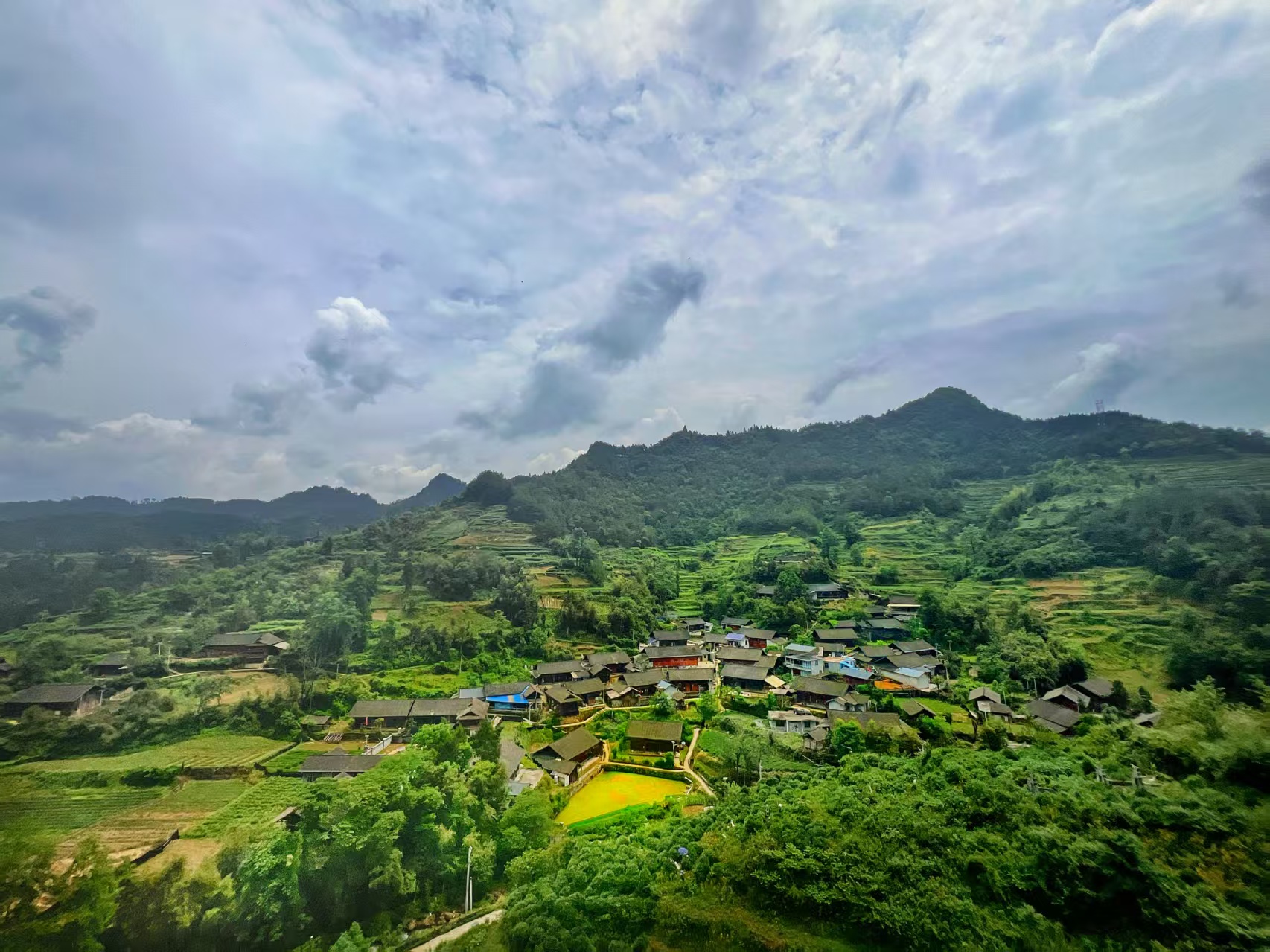 排茹为苗语,大意是深山峡谷里面的一块坪地。其实,这坪地很小,是由无数块更小的坪沿着缓坡的山势呈梯形组成,稻田和旱地便有了起伏,茶园只能一垄一垄围着小山堡呈螺旋状如波浪般荡向山顶。建了房屋没了坪坝,就从主屋的侧面支出一幢悬空的小楼,小楼的走廊上时常挂着一串串鲜红的辣椒,或者金黄的玉米。村间小道似树叶的脉管,东奔西窜地连接着这房那屋,每一条小道都会因为地势有一段长了青苔的石阶默默地沉淀岁月。这岁月里,有父老乡亲们从生到死的轮回;这岁月里,也有我长满了憧憬的童年。