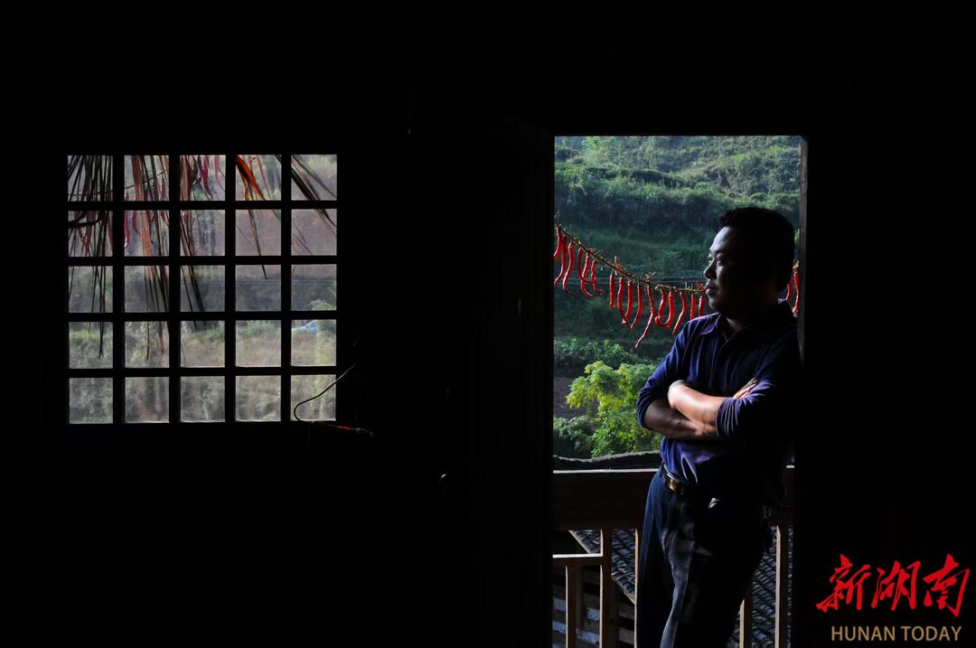 和李兵的挪不开脚步不一样,著名诗人匡国泰却在排茹撒开了腿疯跑。为了给我在《文学界》里做一期“诗人与故乡”的专栏,他从长沙专程过来走进了深山溪谷中的排茹。一走进排茹,他就激动不已,举着相机,对准这个房檐那个屋角、这个楼子那个院门,使着劲儿咔咔咔地按下快门。从寨子的东边跑到西头,又从寨子的上方跑到下边,再爬上寨子对门的那个山堡,一刻也没有停歇,硬是从烈日高照的鸡鸣狗吠拍到了夕阳西下的炊烟四起。