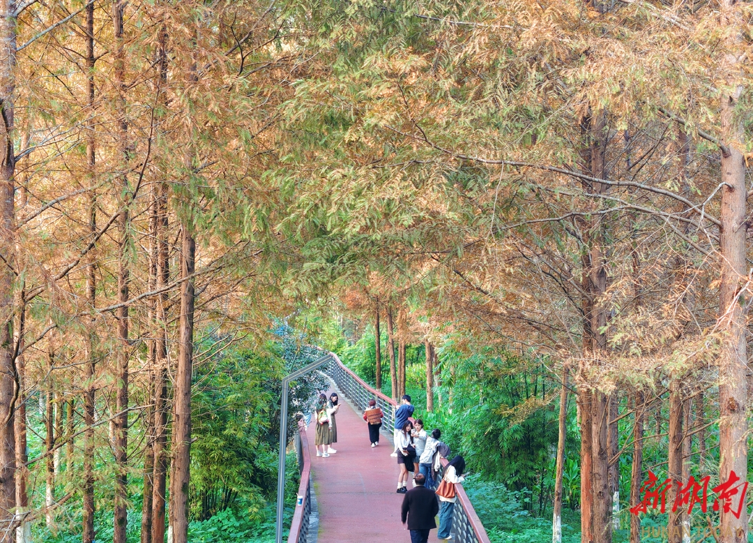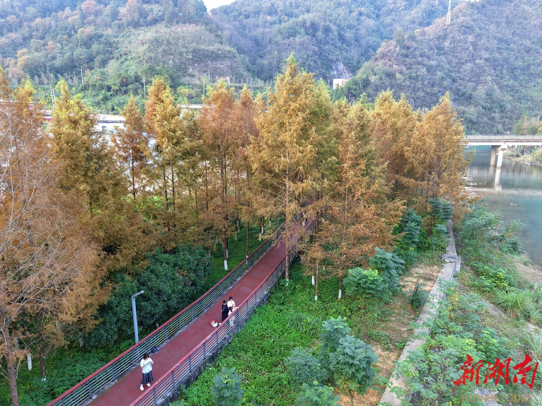 这里早已是吉首市民冬日打卡的热门胜地。游步道设施齐全,穿梭在水杉林中,无论是悠闲散步,还是骑行赏景,都能沉浸式感受冬的静谧与绚烂。