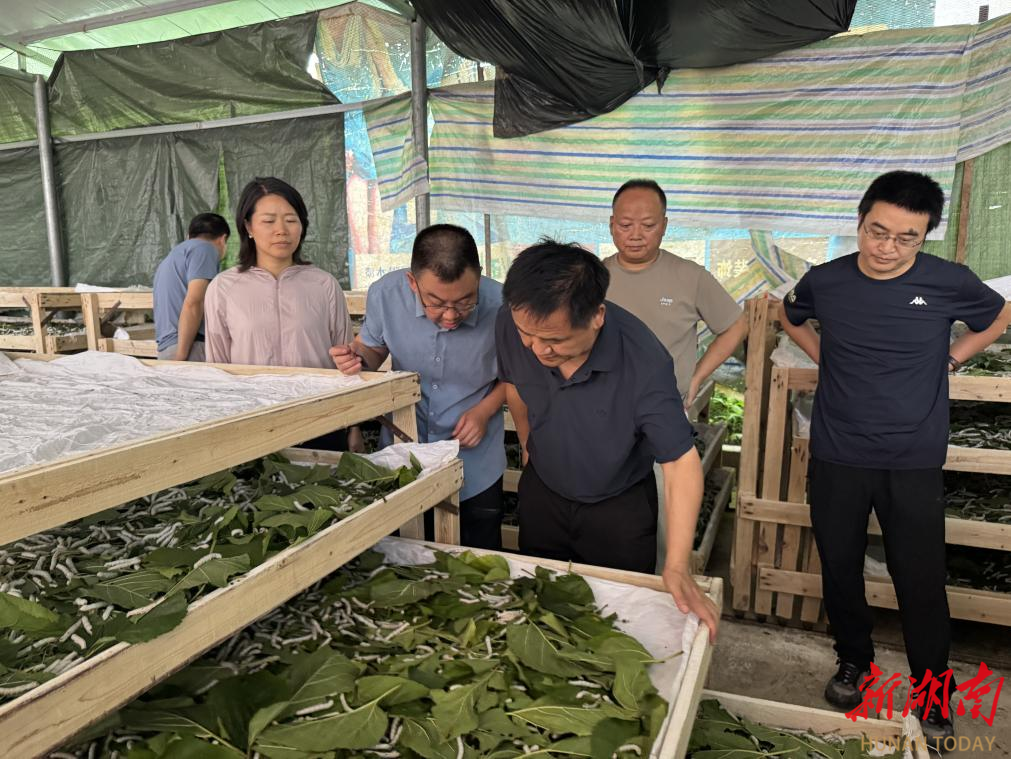 在落潮井蚕桑基地,湖南省蚕桑科学研究所艾均文教授每次到来都进行“现场教学”。他捻起一只蚕种,告诉县蚕桑办干部吴金泽,选种工作要细致,需综合考量蚕体健康度、活性和遗传特性,这关系到蚕茧质量和产量。在艾教授指导下,吴金泽及其团队将精细化养蚕标准推广到全县合作社和农户。最终,艾均文教授研发的“饲料蚕”技术成功突破季节限制,进一步延伸了产业链。