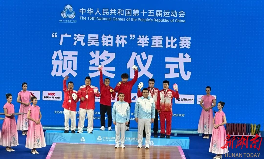 新湖南客户端11月20日讯(通讯员 宋显金)今天,在广东东莞石龙中学体育馆举行的第十五届全国运动会举重男子109公斤级决赛中,湖南中联重科代表队的花垣籍运动员石禅龙发挥出色,以抓举165公斤、挺举209公斤、总成绩374公斤的表现,为湖南代表团摘得一枚宝贵的银牌。