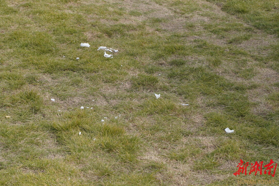 部分散落在绿地的纸屑