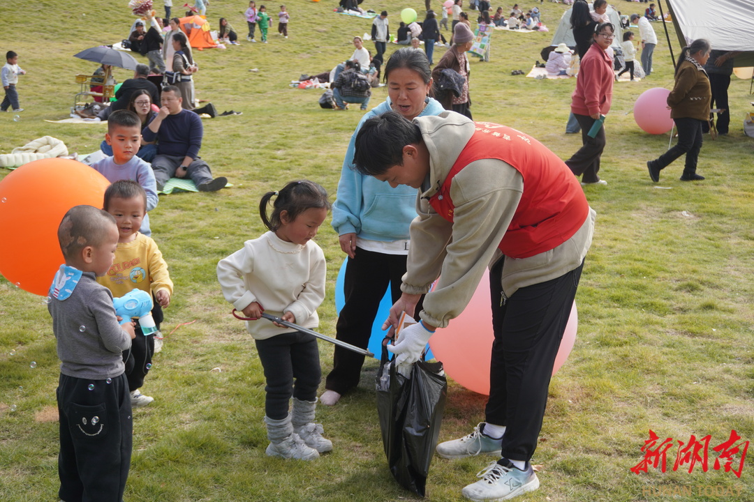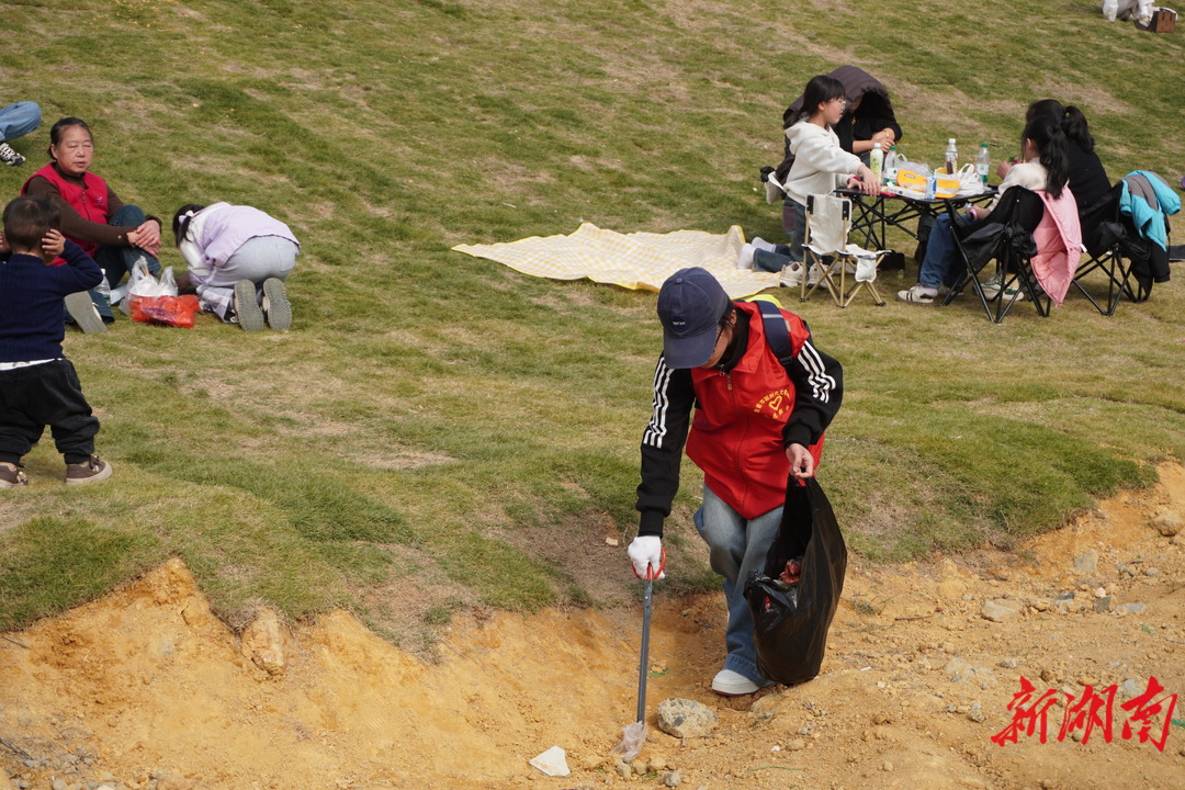 湘西秘境旁的绿地间,志愿者手持工具俯身捡拾垃圾,对不文明行为轻声劝导。特色打卡点前,志愿者通过倡议宣讲等形式传递“草坪轮休”理念,更细致解读公园设计巧思、收集市民优化建议。活动中,不少稚嫩的小朋友也主动加入捡垃圾的行列,小手拉大手共护绿意。