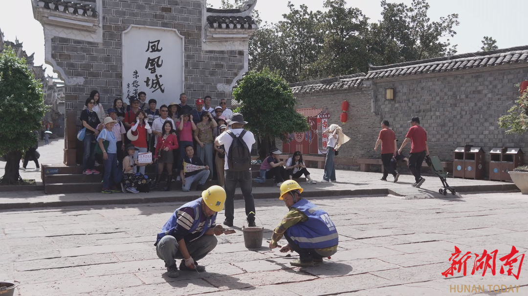 凤凰古城一步一景、古韵悠长的背后,是一场紧锣密鼓、群策群力的文化遗产抢救性修缮。据龙室伊介绍,项目坚持“修旧如旧”原则,采用古法榫卯结构衔接木构肌理,用传统工艺打磨石板纹路,从石材选取到纹样修复都恪守古法规制。