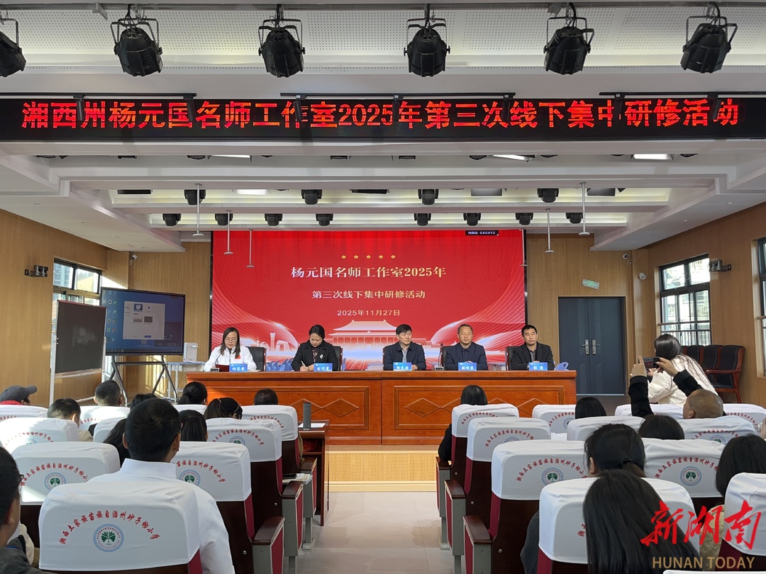新湖南客户端11月27日讯(通讯员 向菊香 邓谦 周智慧 吴秋风)今天,湘西土家族苗族自治州武陵人才支持计划杨元国名师工作室2025年第三次线下集中研修活动,在湘西州砂子坳小学开展,来自全州八县市及州直学校的小学数学骨干教师齐聚一堂,以课为媒研教学、以研促教提素养,切实发挥名师工作室示范引领作用,助力教师专业能力进阶。