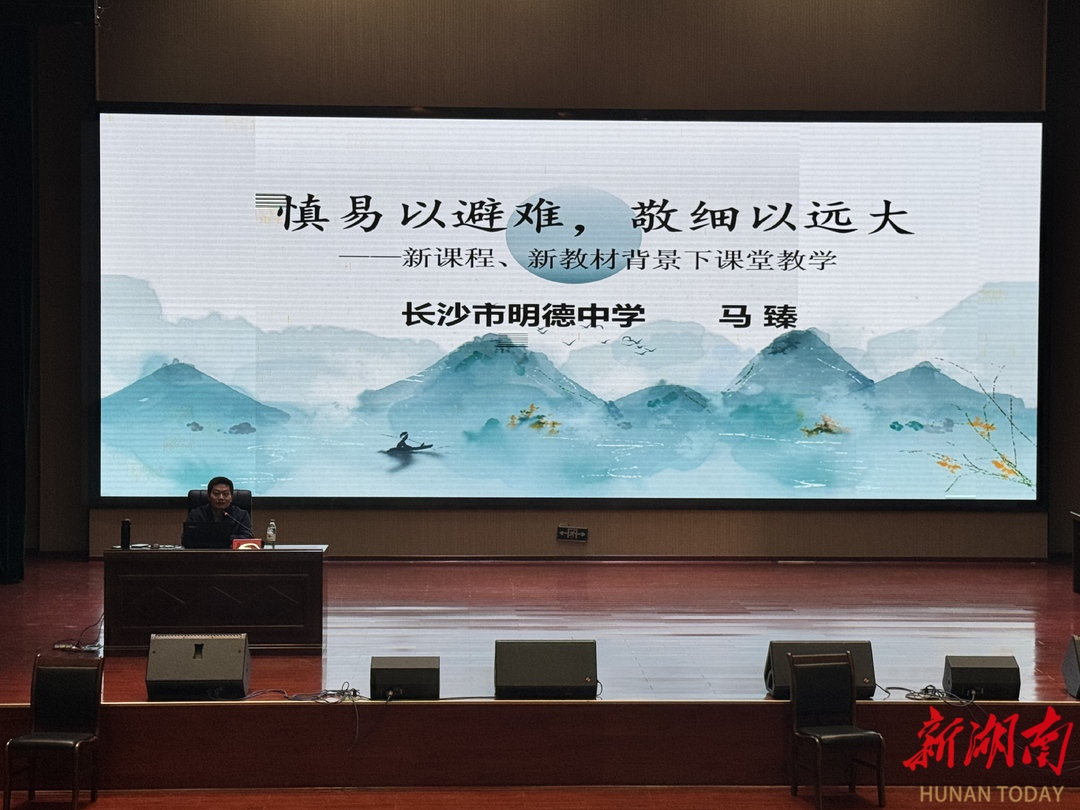 活动中,省城专家讲座为一线教师传经送宝。长沙一中龚日辉老师结合多年备考经验,作《2026届高考数学二轮复习策略》讲座,从考点梳理、题型归纳、学情适配等方面,为二轮复习精准发力指明方向;明德中学马臻老师以《三新背景下课堂教学的探索与反思》为题,分享如何在新课标、新教材、新高考背景下优化课堂结构、提升教学效率,引发在场教师的深刻思考。