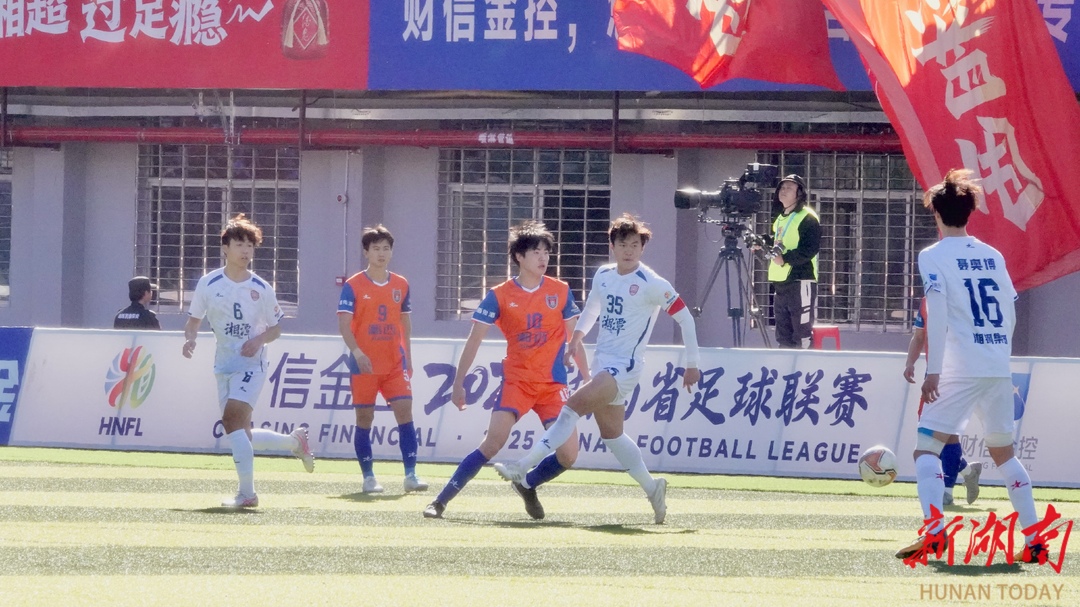 易边再战,场上风云突变。湘潭队明显加强了前场的逼抢和进攻节奏。比赛的第61分钟,僵局被彻底打破,湘潭队26号球员陈志杰在禁区内抓住机会,冷静施射得手,将比分改写为0:1。