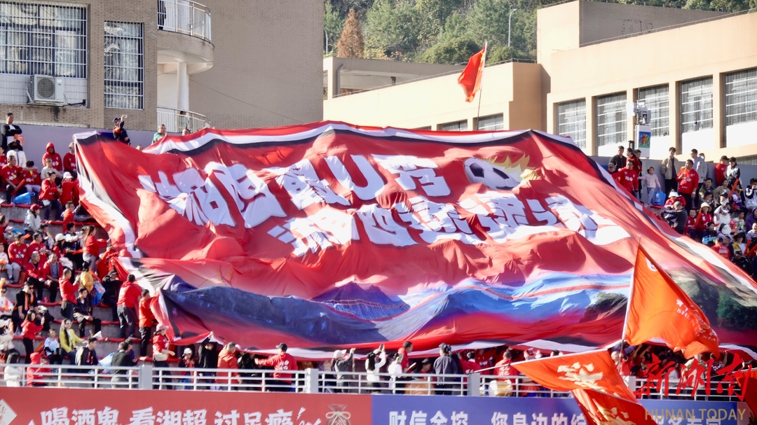 尽管是赛场上的对手,但赛前的气氛却格外融洽。作为东道主,湘西州队球迷高唱《东方红》,以昂扬的歌声热烈欢迎湘潭队队员及随队球迷的到来。湘潭队的球迷随即以经典民歌《浏阳河》作为回应,悠扬的旋律在体育场上空交织,这一刻,体育竞技的友谊与尊重超越了胜负。