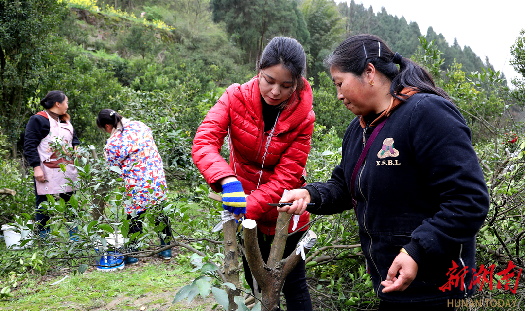 菖蒲塘村女子嫁接队成员专注嫁接“热恋橙”新品种,以农技赋能乡村特色水果产业发展。