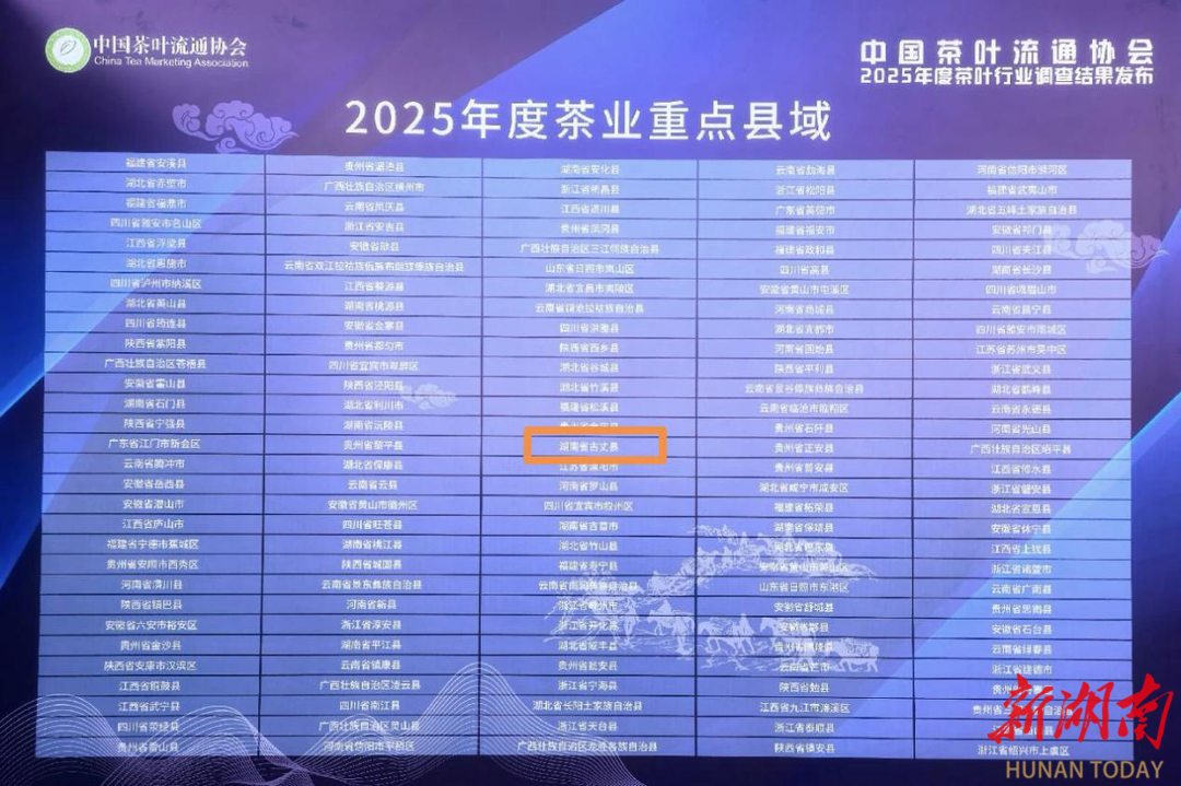 新湖南客户端12月3日讯(通讯员 张棋铭 欧阳秋韵)11月27日,第二十一届中国茶业经济年会在浙江新昌隆重开幕。湘西土家族苗族自治州古丈县凭借在茶产业发展与营商环境建设中的突出表现,一举斩获“2025年度茶业重点县域”“2025年度茶业营商环境友好县域”两项殊荣。
