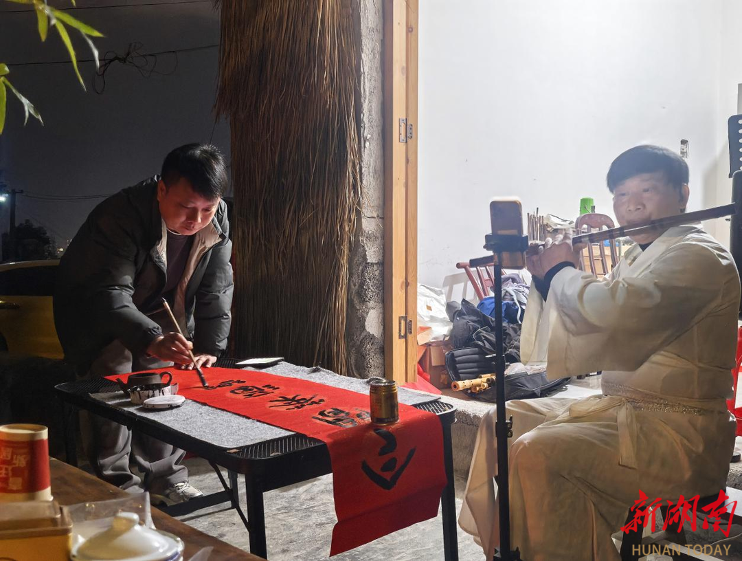 箫音暂歇,墨香却浓了起来。长案早已铺开宣纸,伴着笛声的节奏,提笔、舔墨,凝神片刻,便落笔书写。笔走龙蛇,墨迹酣畅淋漓,他写字时,众人在一旁静静看着,眼神交汇处,并无言语,却有一种比言语更坚实的懂得在流淌。