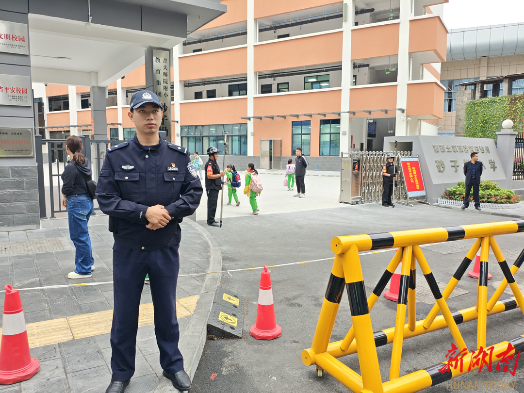 砂子坳小学门口的“警+N”护学岗。