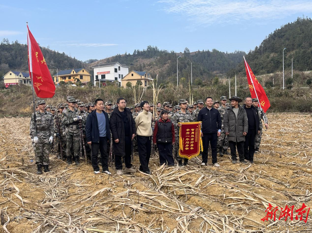 新湖南客户端1月12日讯(通讯员 沈小雯)1月11日下午,湘西土家族苗族自治州吉首市己略乡己略村川洞坪的甘蔗地里暖意融融、干劲十足。来自吉首大学学生民兵预备大队、国防教育先锋社的80名队员身着统一服装,手持镰刀、砍刀等工具,分工协作开展甘蔗砍收、搬运、整理工作,以志愿服务为当地种植户化解寒潮来临前的采收难题。