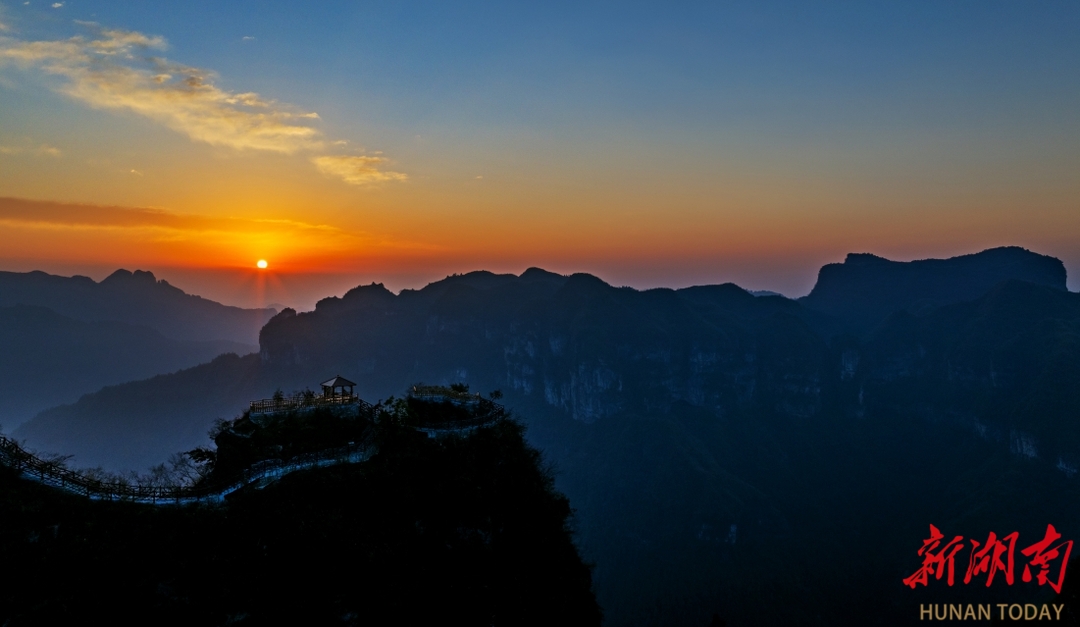 如今,在无数旅游爱好者和摄影师的电脑桌面、手机屏保上,那幅武陵蚩尤山日出图,已成为这方美丽山水的文化图腾。唯美精致的图片被当时的驻村扶贫工作队队长慧眼识珠,推荐给岳麓书社收入沈从文《边城》作内页首选整页插图,被誉为最能诠释沈从文《边城》意境的摄影作品。