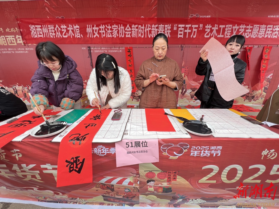 盛会不仅能备年货,更能圆安家梦。“宜居州府”优质楼盘区精选多款好房,专属购房优惠诚意满满;“品质家装”装修建材区提供从基础材料到风格设计一站式安家配套服务,省心搭配打造理想家居空间。“新春送福”公益互动区里,书法家现场挥毫赠春联,残疾人手工艺品义卖传递温情。除此之外,“两桶油”(中国石化湘西石油分公司和中国石油湘西分公司)现场办理优惠卡,福利彩票举办“迎新春送财富”活动。