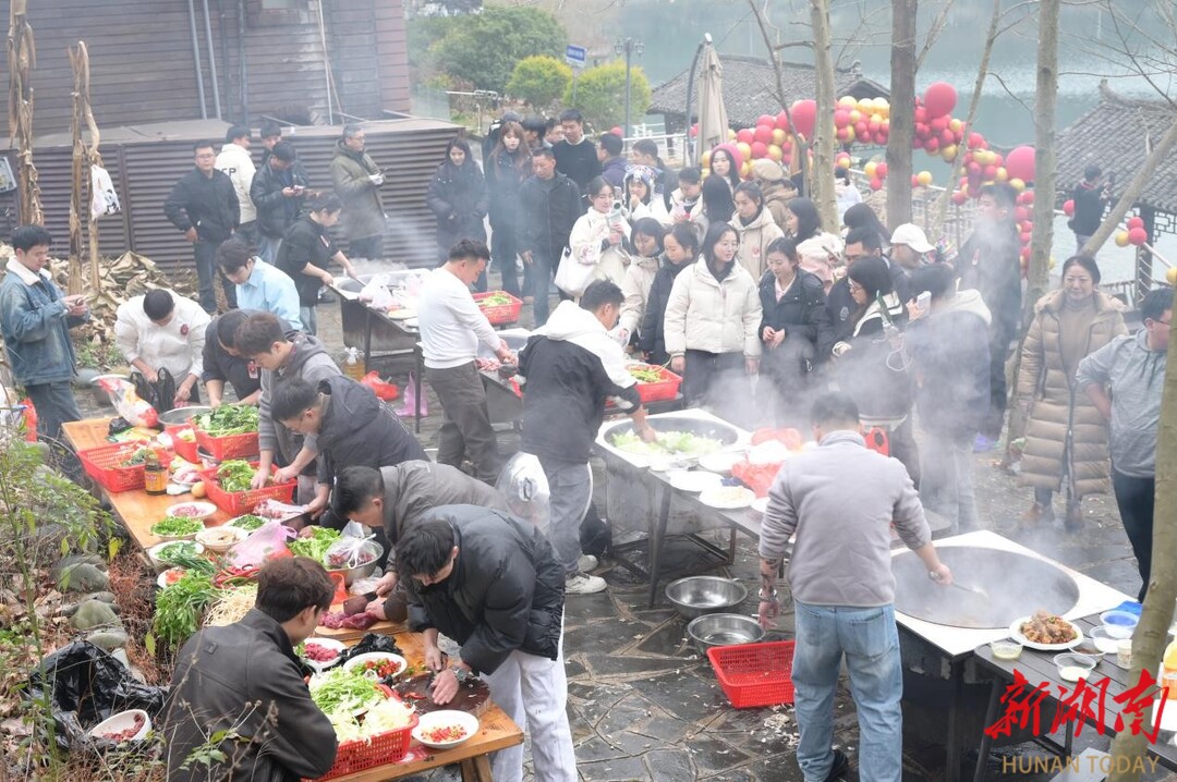 “第一次吃长桌宴,跟天南海北的人一起炒着当地特色菜吃,真有意思。”一位从广州来的先生掂着锅铲说,嘴角满是笑意。