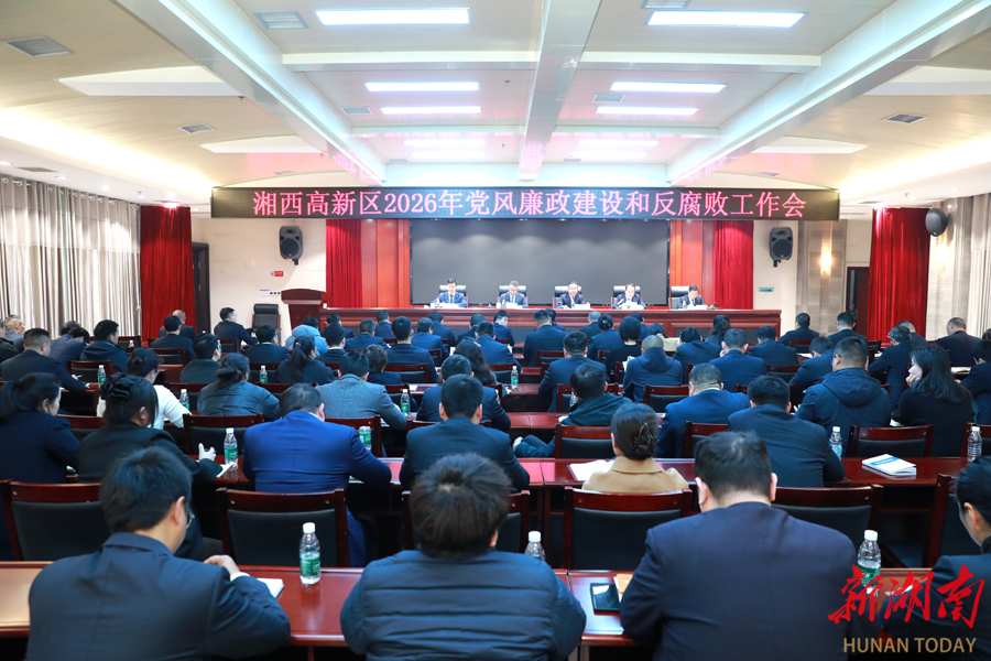 新湖南客户端2月28日讯(通讯员 胡大湘)2月27日下午,湘西高新区召开2026年党风廉政建设和反腐败工作会议,总结过去一年党风廉政建设工作成效,分析当前面临的形势任务,安排部署下一阶段重点工作。湘西高新区管委会主任戴晓军出席会议并讲话。区党工委副书记、纪工委书记、监察工委主任胡丕宇主持会议。