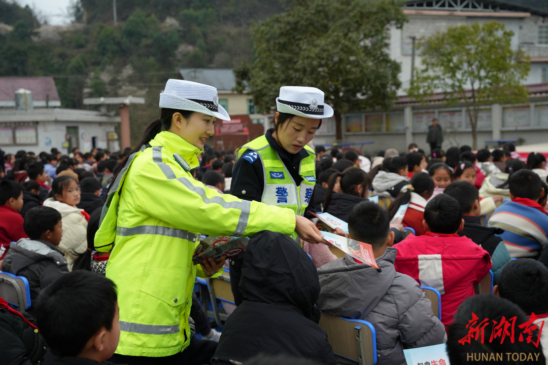 新湖南客户端3月6日讯(通讯员 石遥 董顺 张红军)“乘坐摩托车、电动车的时候要佩戴什么?”“过马路的时候要走哪里?”3月5日,湘西土家族苗族自治州花垣县公安局交通管理大队(交通管理局)走进边城初级中学、麻栗场小学开展“开学第一课”交通安全主题宣传活动,并坚守护学岗一线,将安全知识宣讲与护学守护工作紧密结合,为同学们送上实用又暖心的交通安全“必修课”。